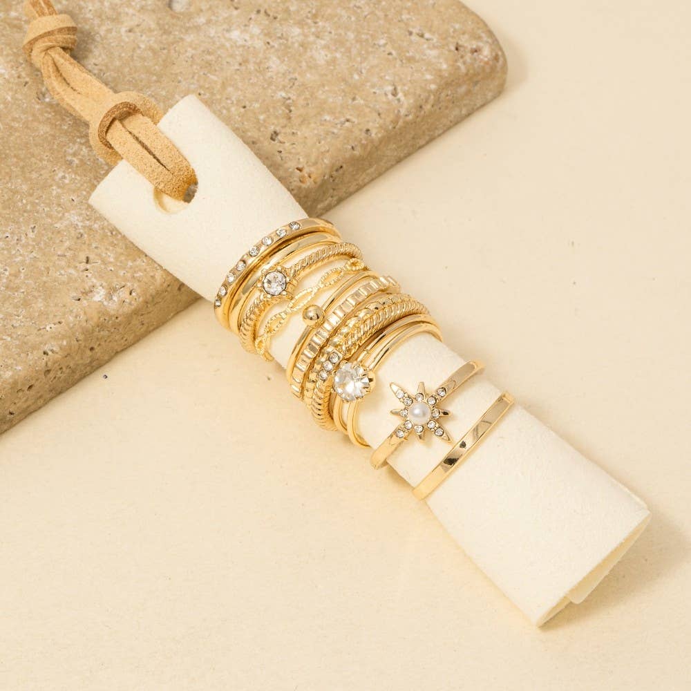 Twelve Piece Assorted Rhinestone Star Ring Set