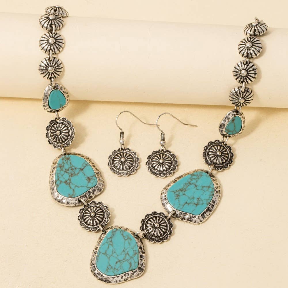 Western Stone Set Concho Charms Paisley Bandana And Chain