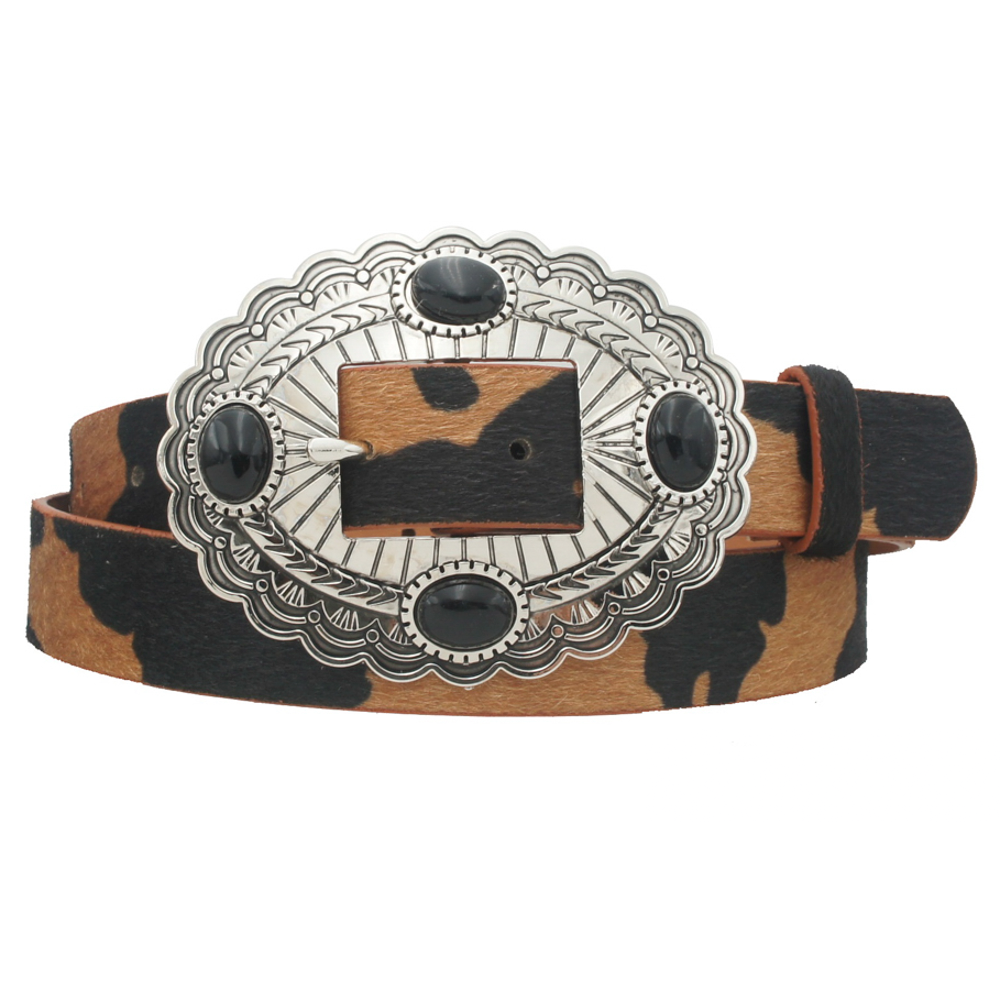 STONE ACCENT OVAL CONCHO BUCKLE COW PRINT