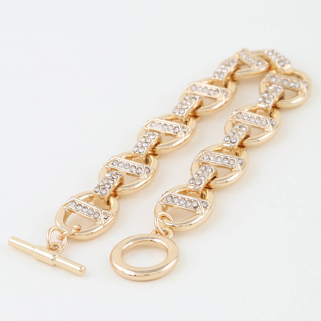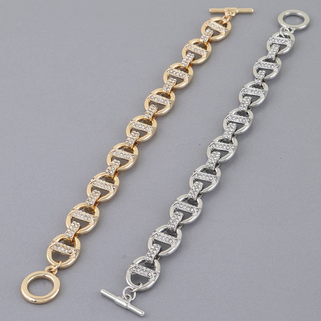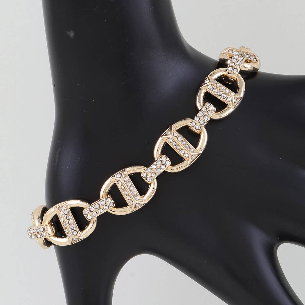 * This is a Bejeweled Mariner Chain Bracelet from H&D Accessories. It features a mariner chain design adorned with sparkling jewels. When you're attending a fancy dinner party, wearing this bracelet can add a touch of glamour to your elegant outfit. Or, for a casual day out with friends, it can also serve as a stylish accessory to elevate your simple look.