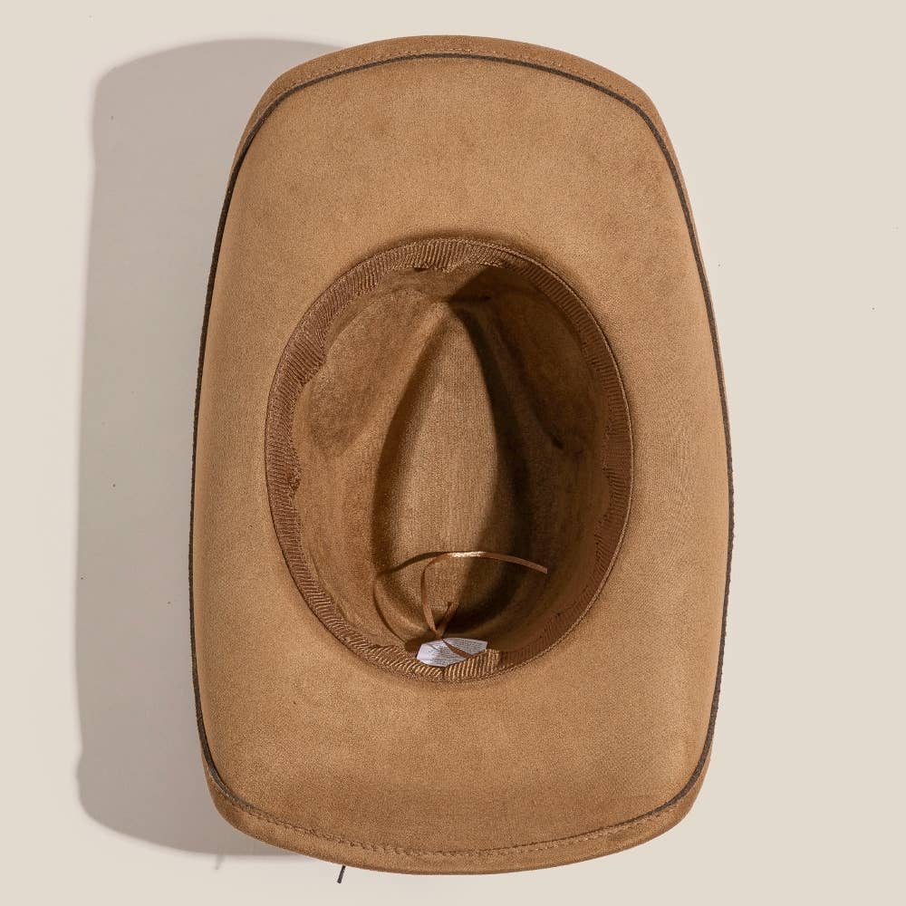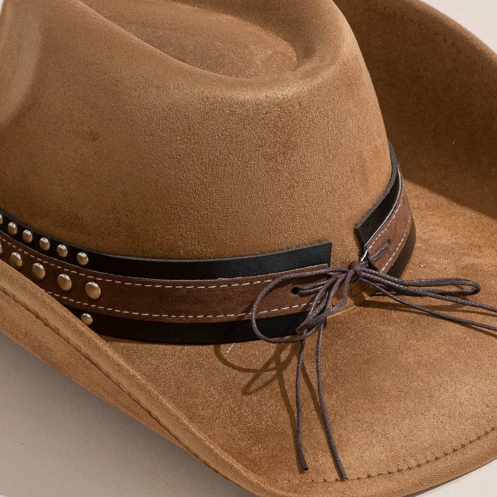 A piece that will never go out of style, this cowboy hat exudes a refined layered western bull head strap design. This item is a great way to add some texture and dimension to any outfit. This cowboy hat is made with 90% Polyester and 10% Alloy. Made in China.