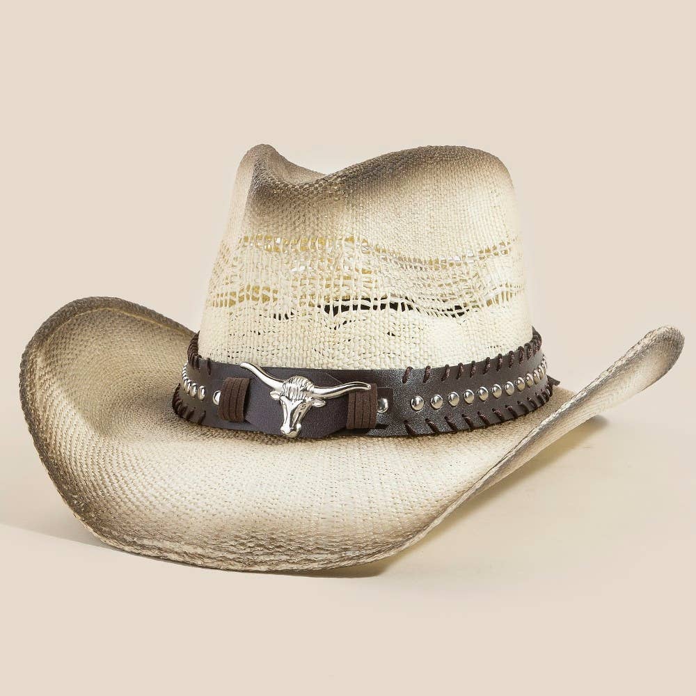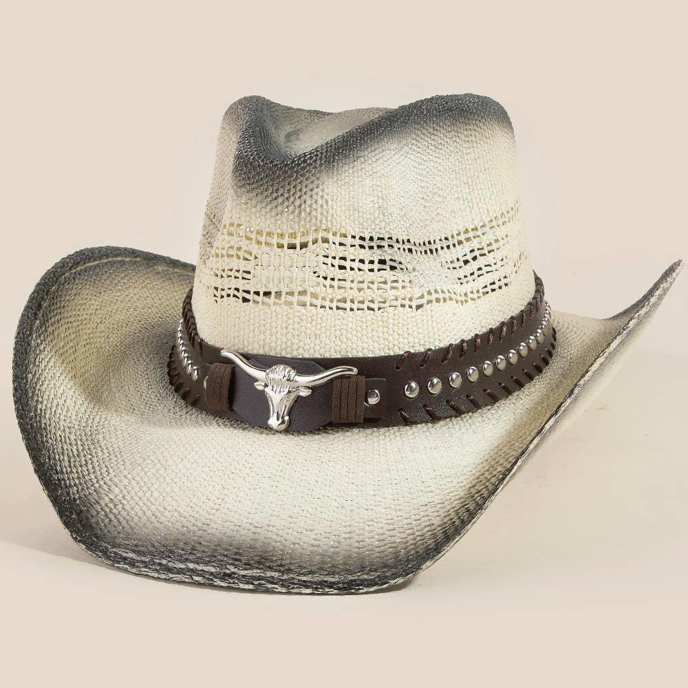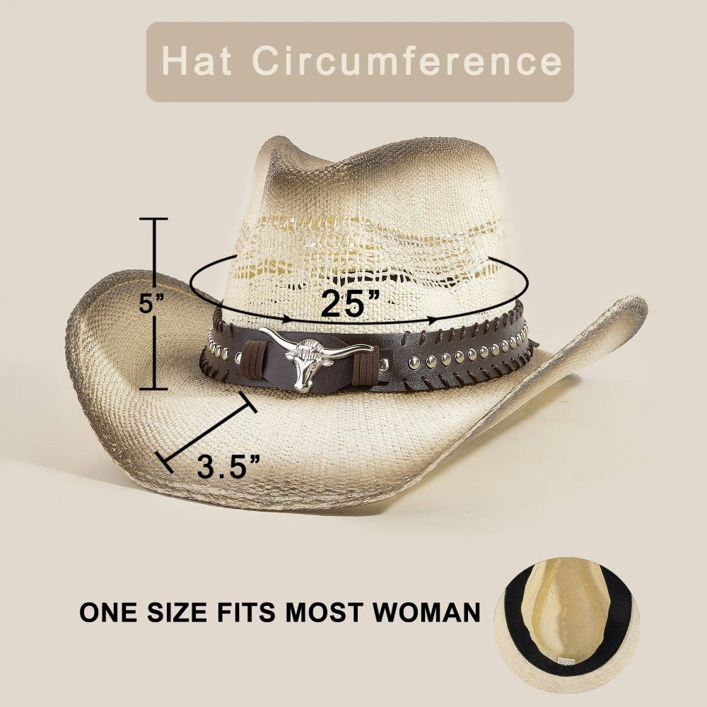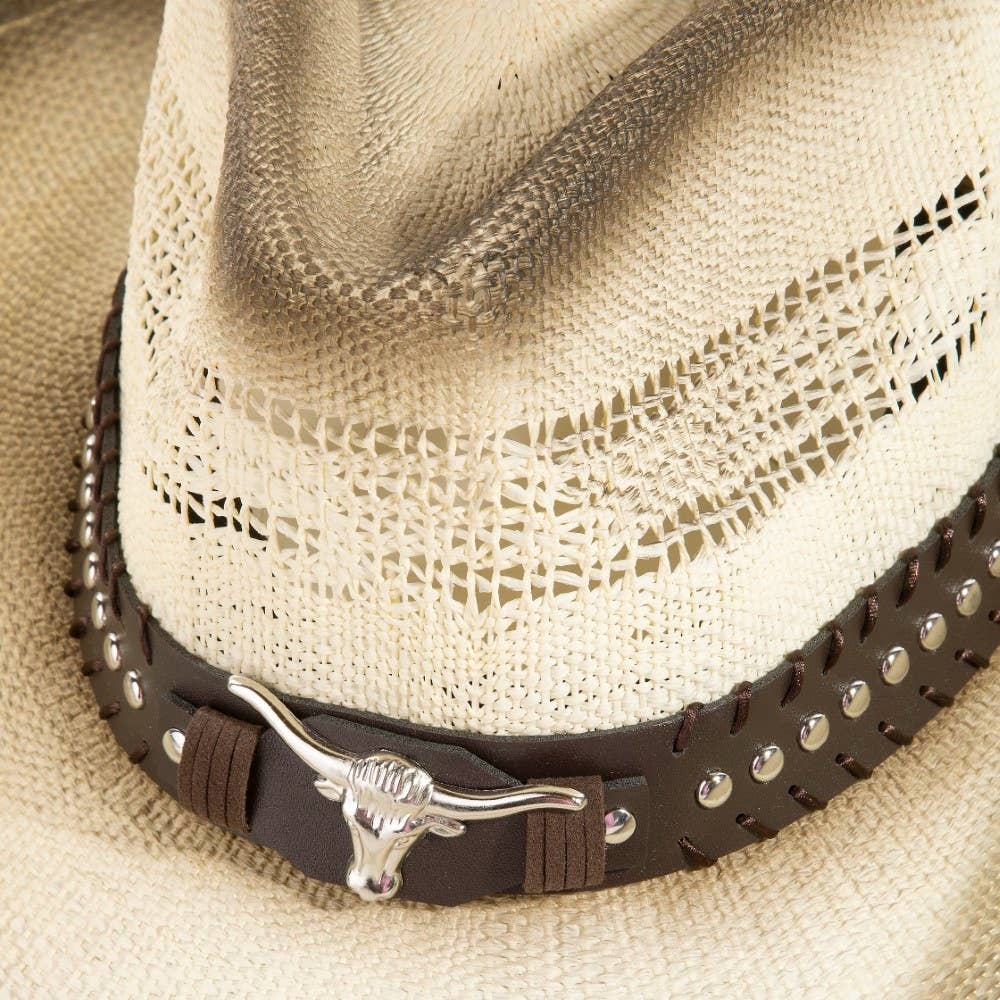 A must-have addition to any cowboy hat collection, this cowboy hat shows off a distinctive western long horn strap straw design. Transform your outfit from ordinary to extraordinary with the touch of elegance provided by this versatile cowboy hat. This cowboy hat is made with 90% Paper, 5% Pu and 5% Alloy.