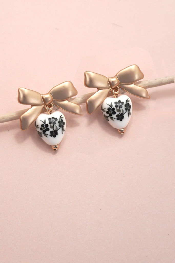 ROSE CERAMIC PORCELAIN BOW DROP EARRINGS