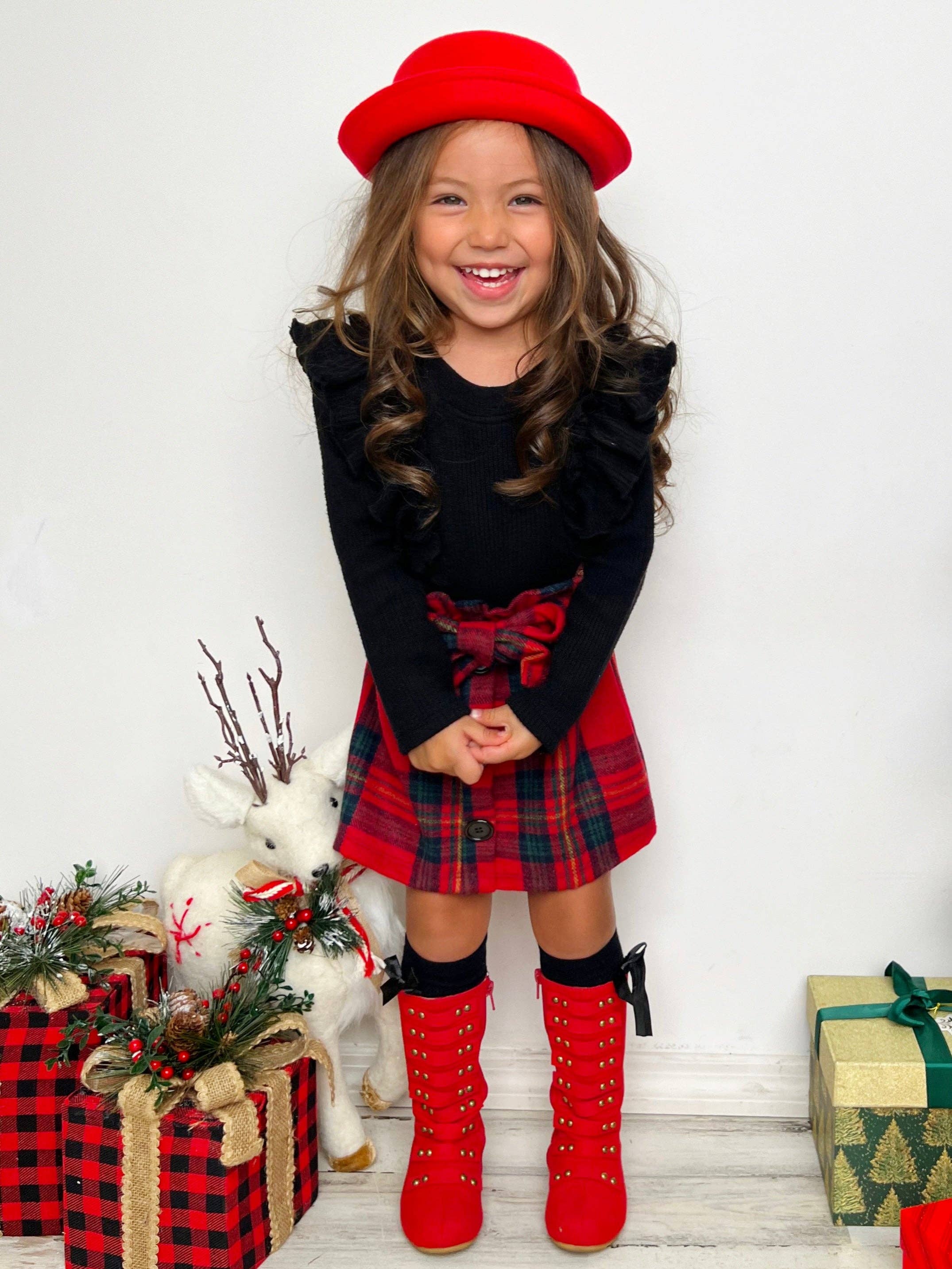 * Make way for your little fashionista! This red ruffled sweater and plaid skirt set sports the season's best styles, from its chic detailing to its beautiful fall colors. Your baby will be the coolest IT girl on the block!