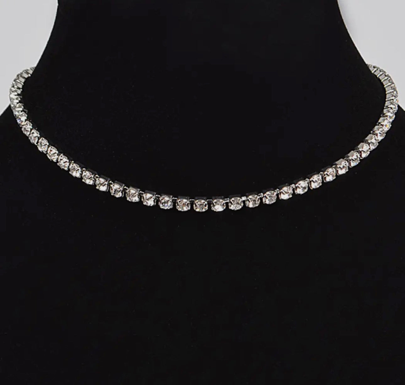 Rhinestone Thin Choker Necklace - Silver *Pre Order*