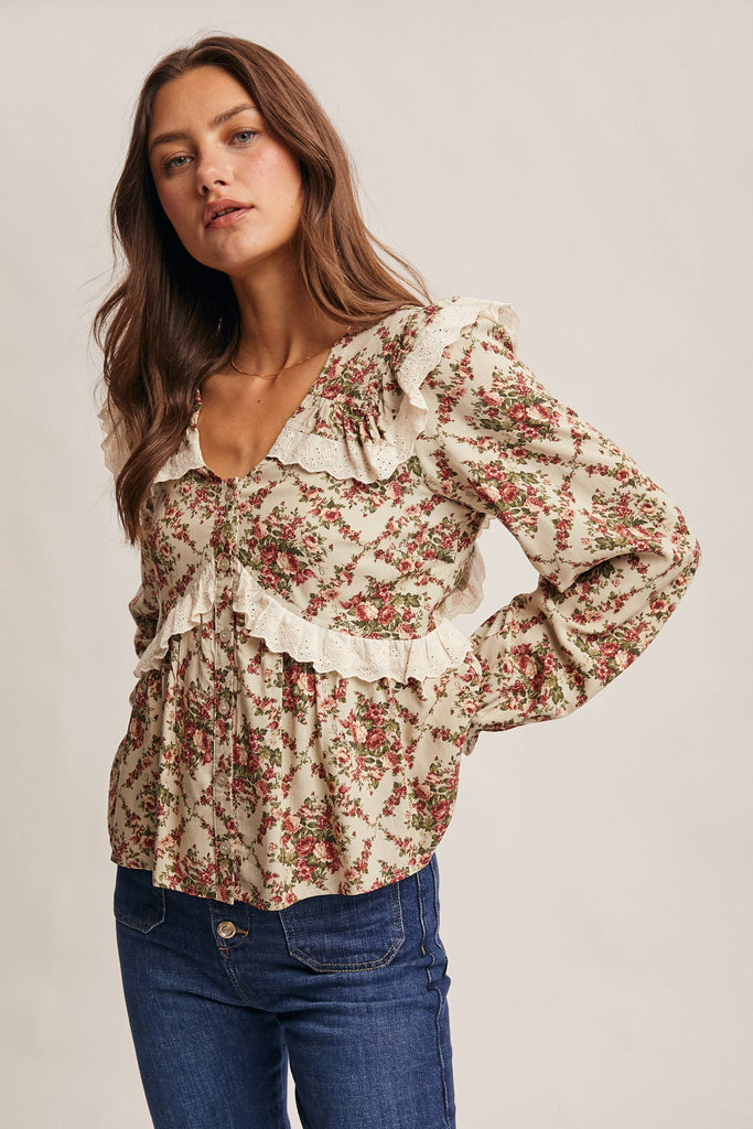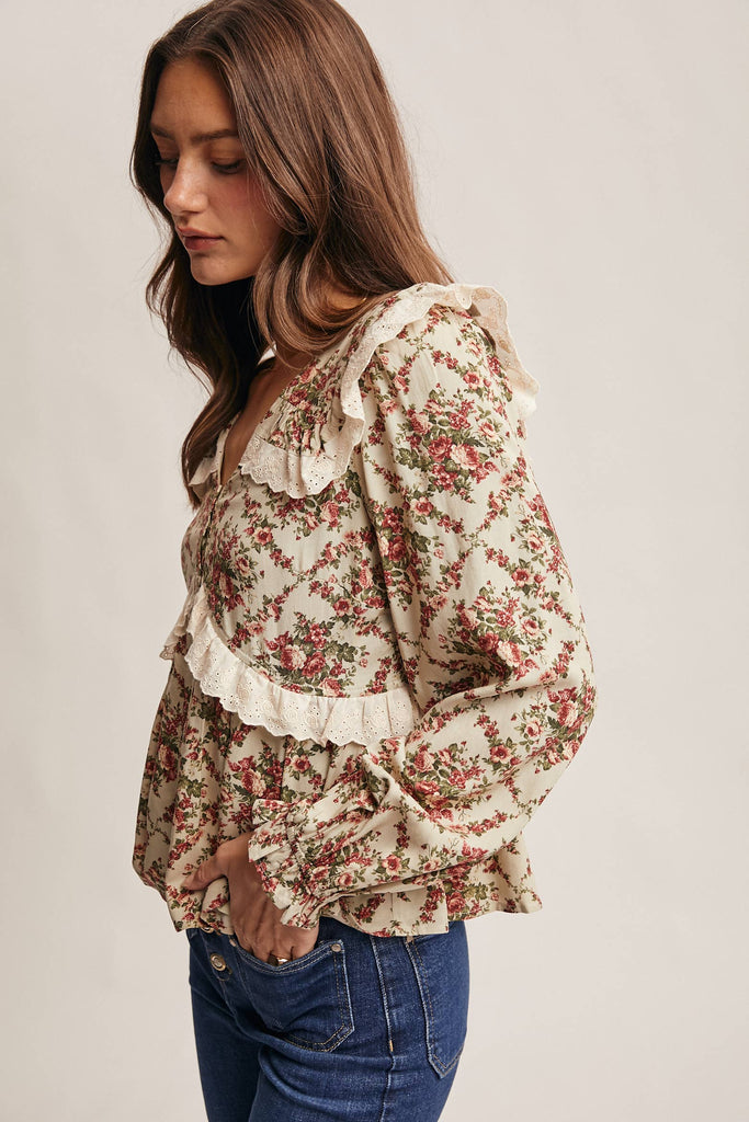 - Long Puff Sleeves: Gently gathered at the shoulder and finished with ruffled elastic cuffs