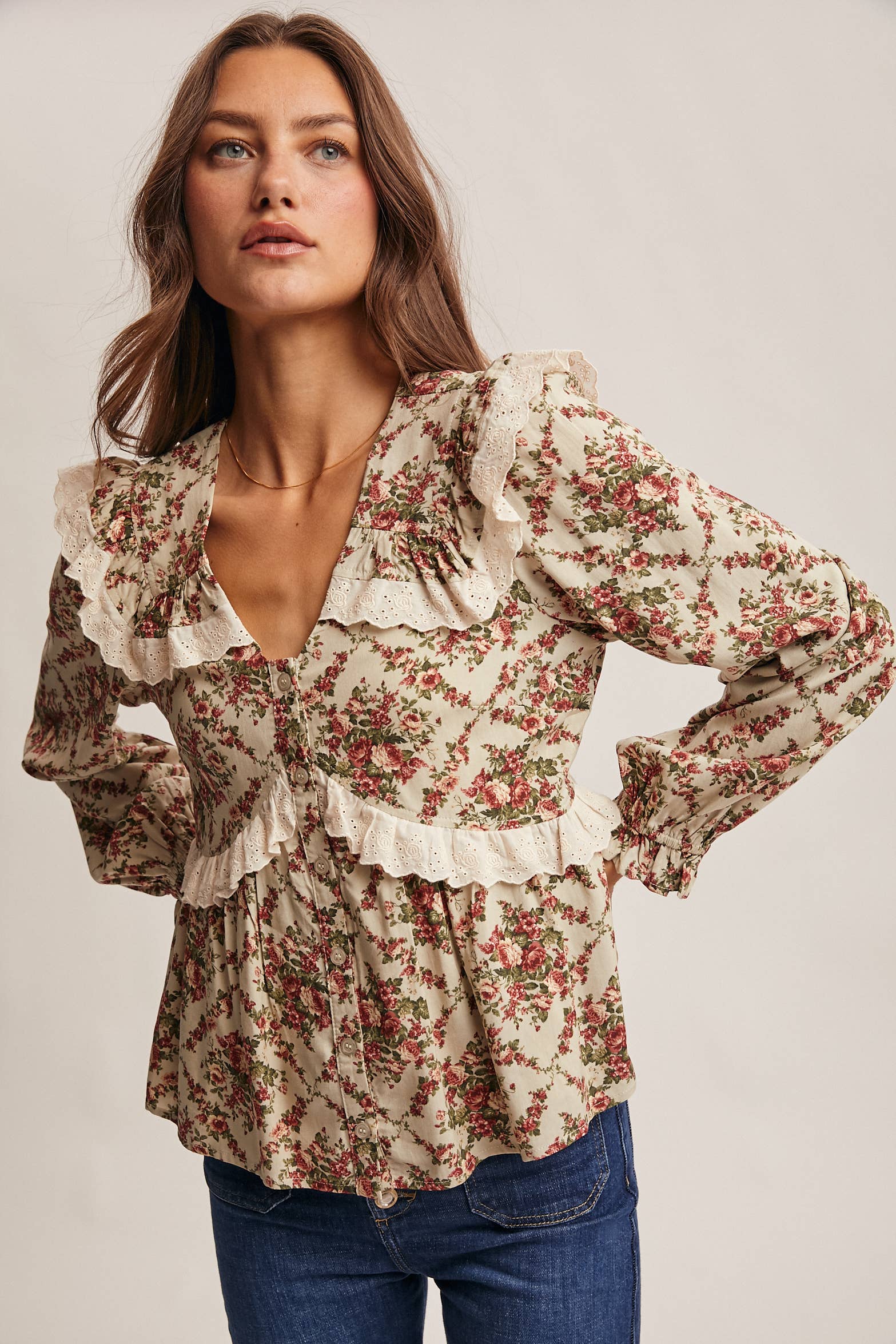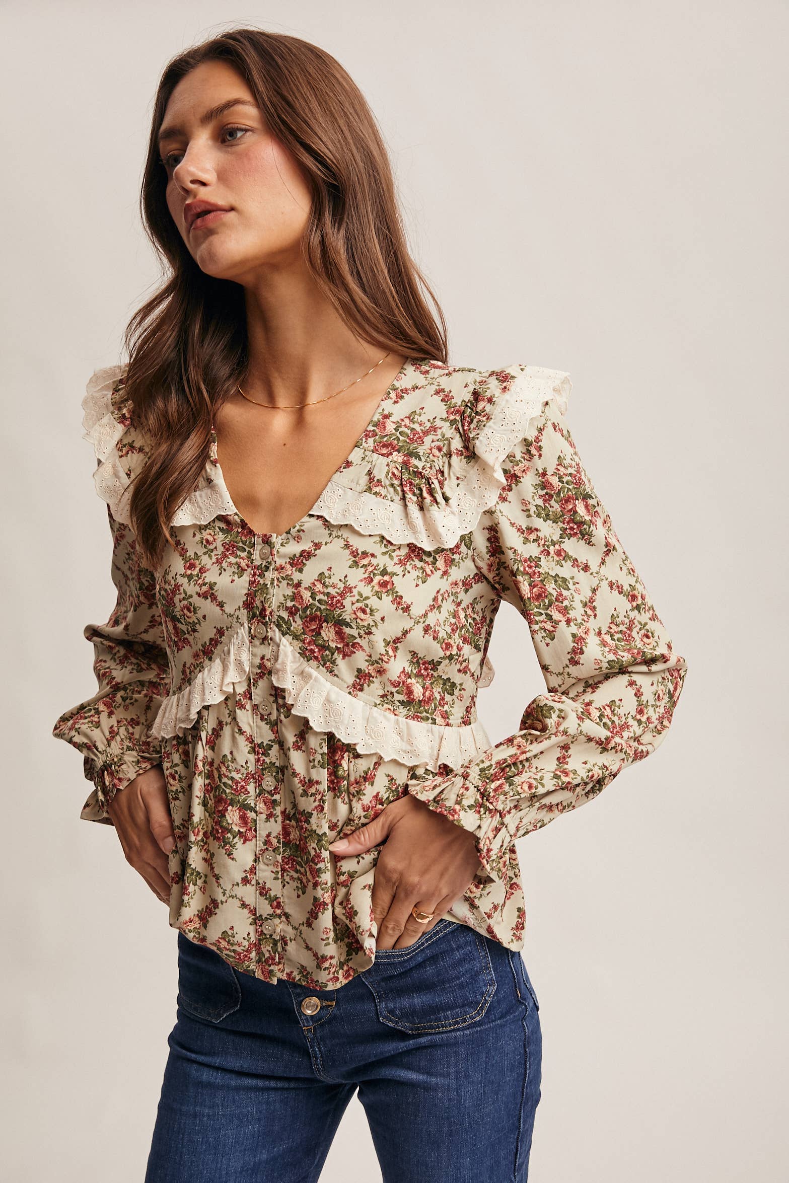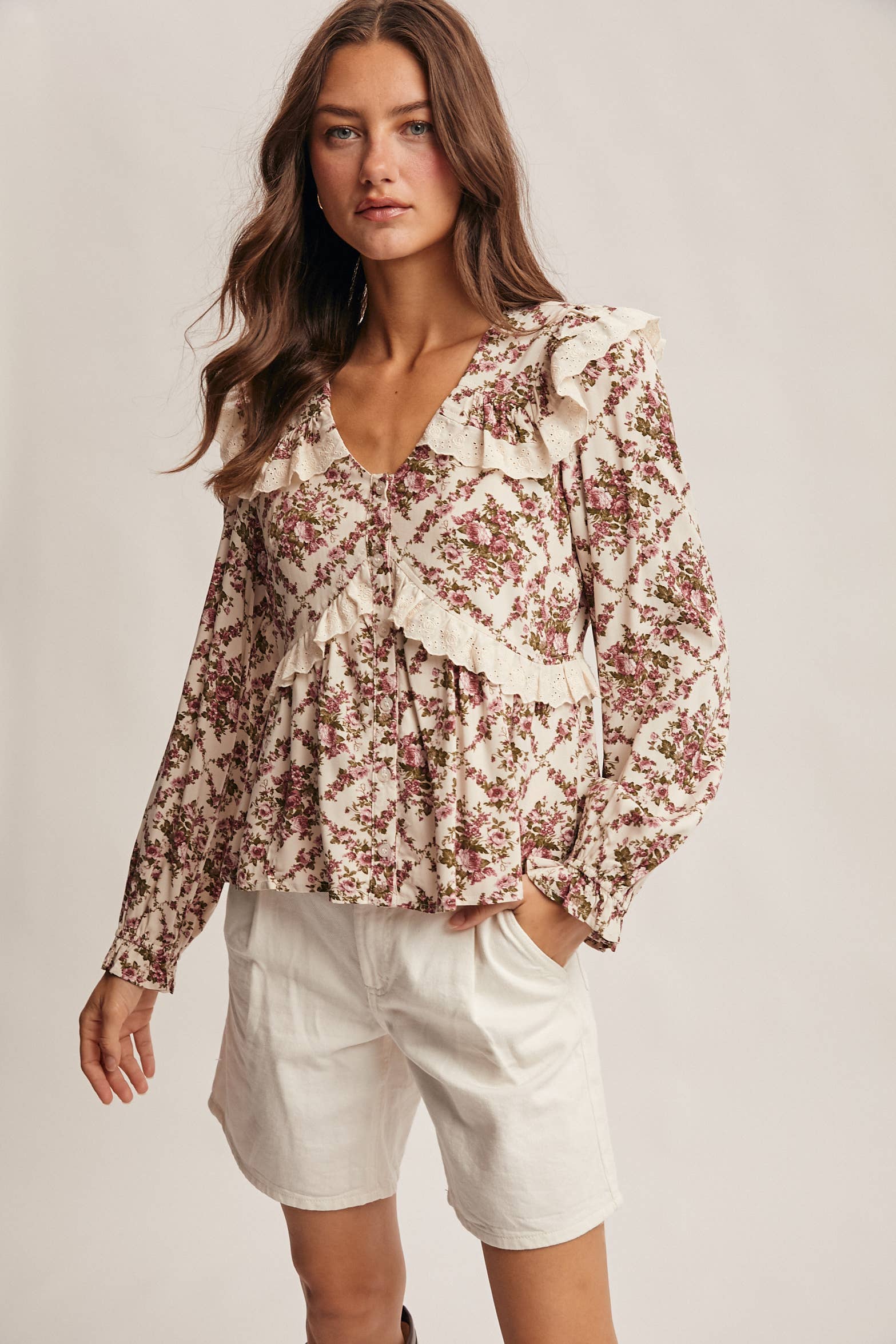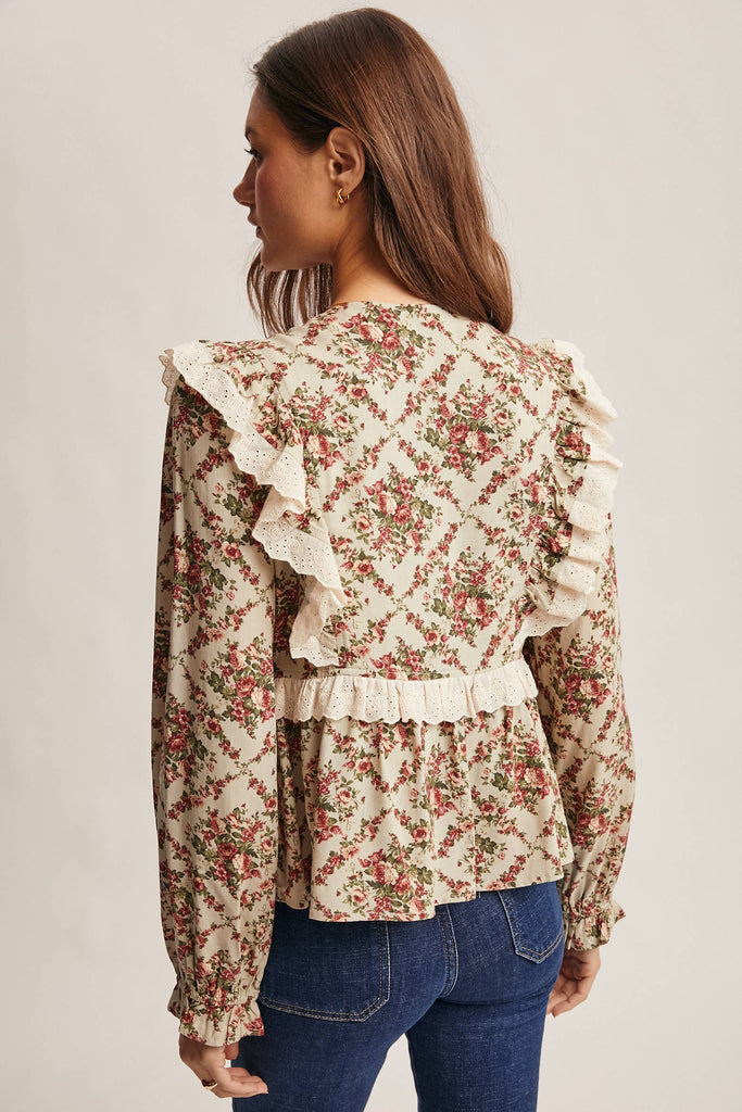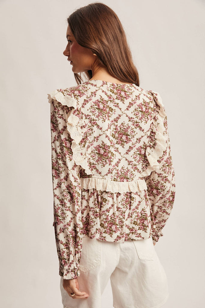 - Scalloped Eyelet Ruffles: Contrasting broderie anglaise trim cascades across the front and back for feminine dimension