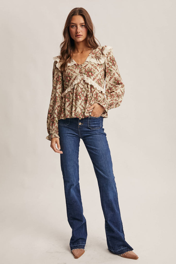 Rooted in sweet nostalgia, this cottagecore-inspired top brings a soft western flair to everyday styling-pair it with denim shorts or cargo jeans to balance the ultra-feminine silhouette with on-trend contrast.