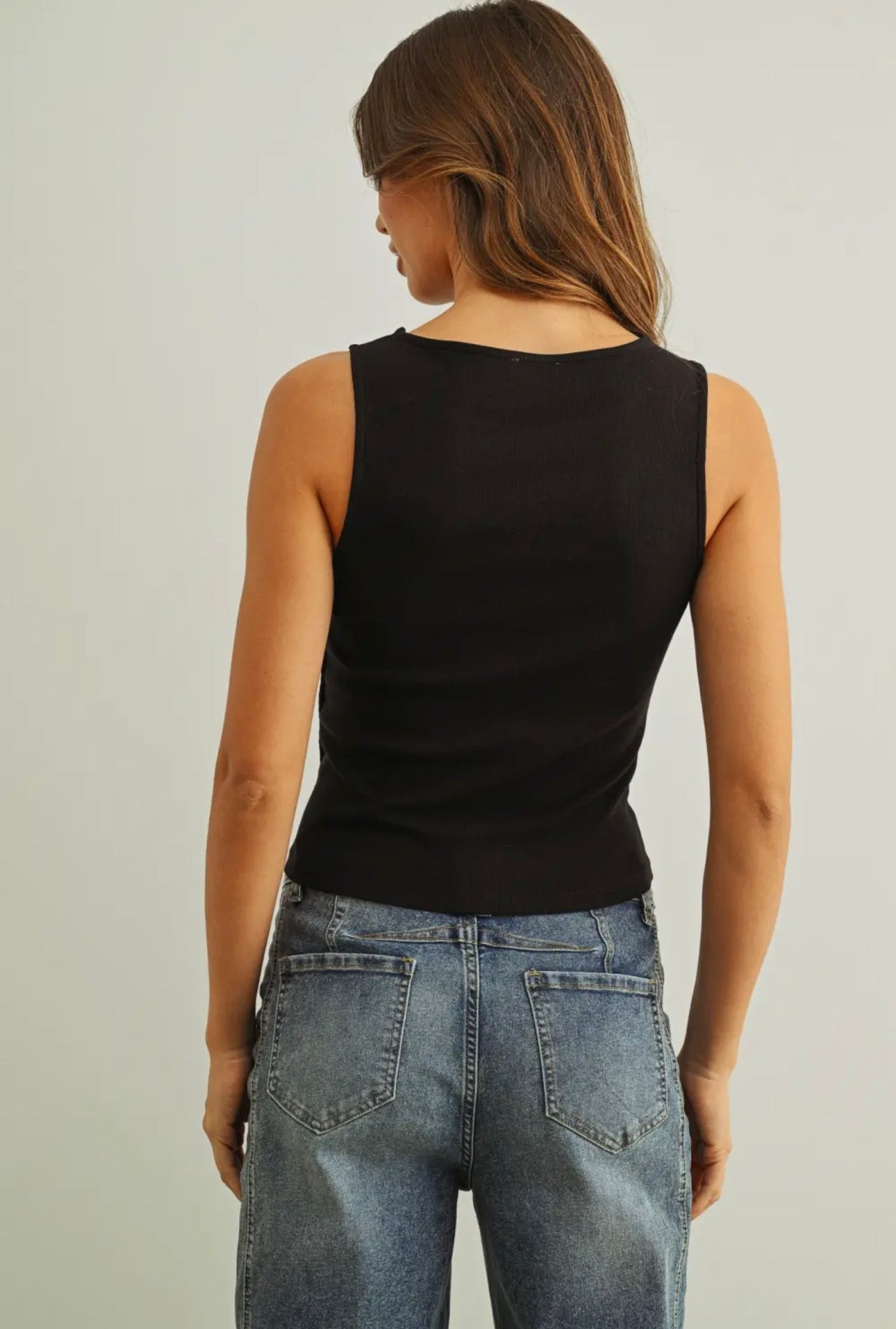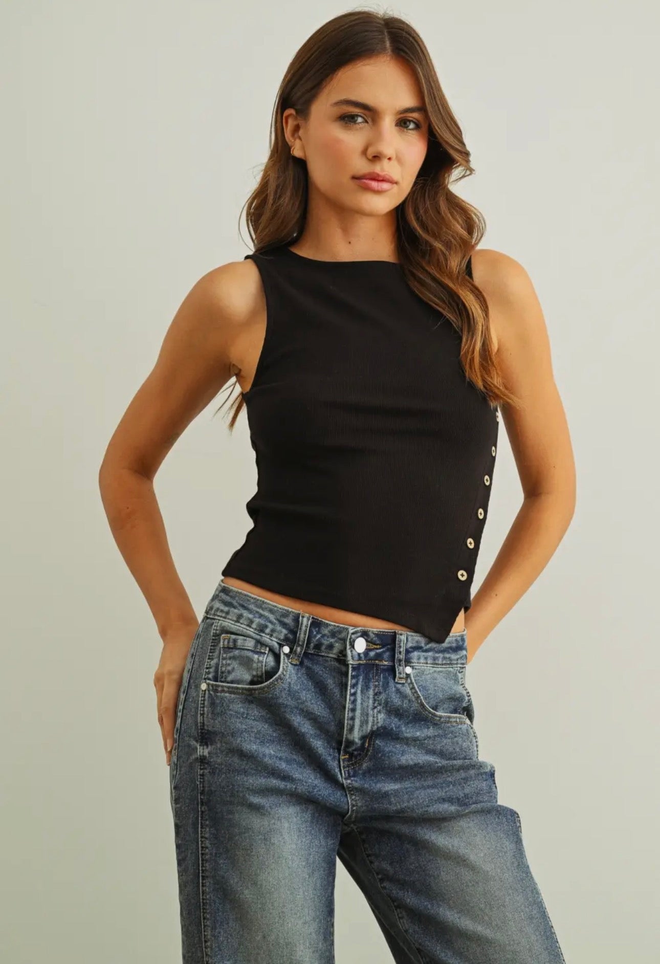 RIBBED S/L BUTTON DETAIL ON THE SIDE TOP * * Size & Fit * * * * * * * * * * * * * * * * Model is wearing size S Measurements taken from size S Height - 5' 7 1/2" / 175.3CM