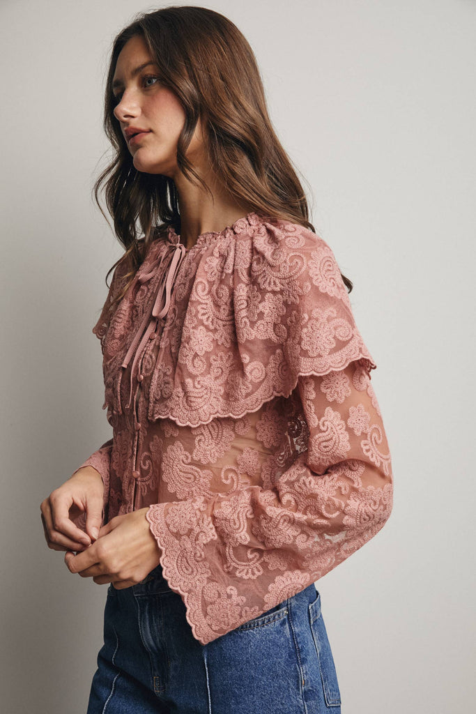Sheer Embroidered Lace Blouse