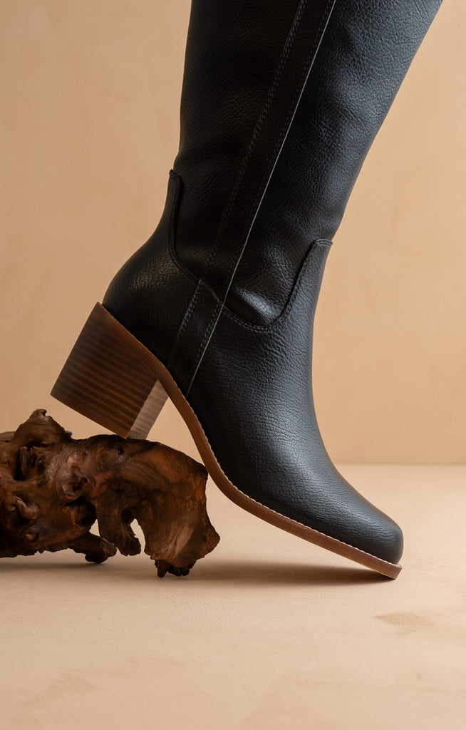 The classic riding boot, elevated. The HARRIET features a clean almond toe, stacked block heel, and pull-on shaft that hits just below the knee. Crafted in rich, atelier-selected leather for a structured shape with smooth wear-in. A timeless silhouette that pairs effortlessly with denim, dresses, or tailored layers.