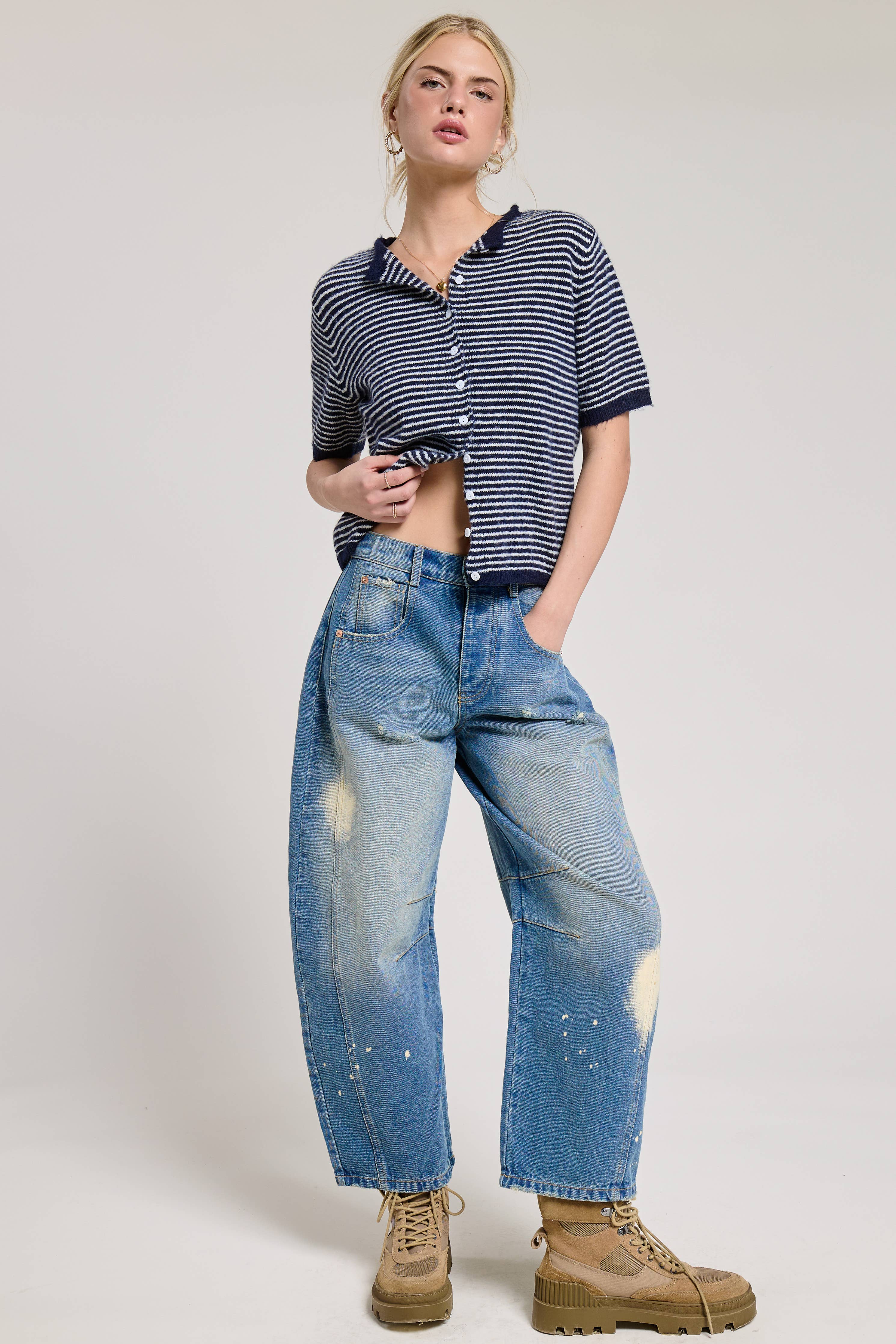 Striped Short Sleeve Button Cardigan *Pre Order*