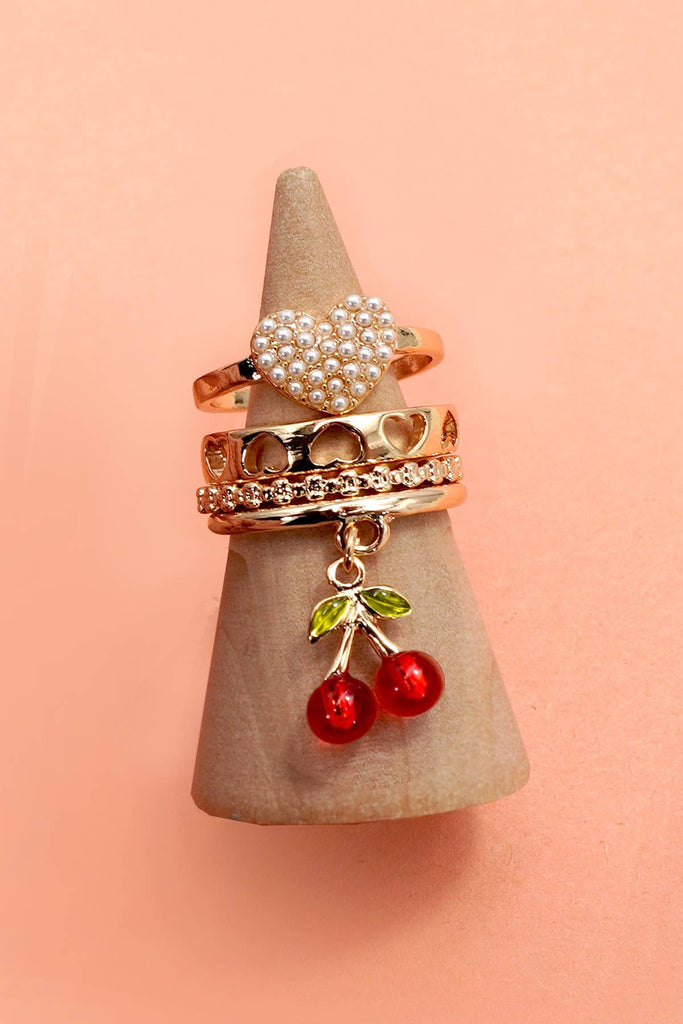 LAYERED MULTI CHERRY PORCELAIN STACKABLE RING SET