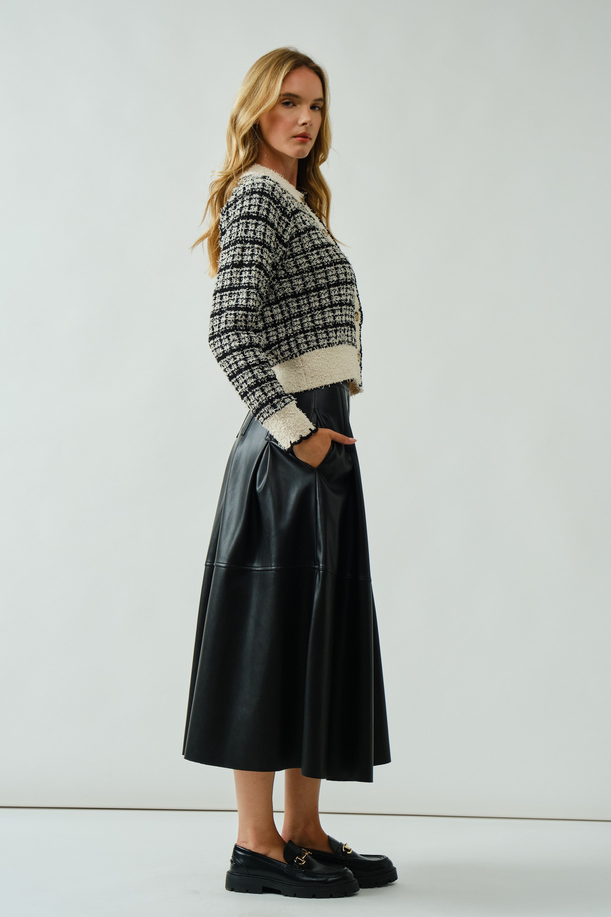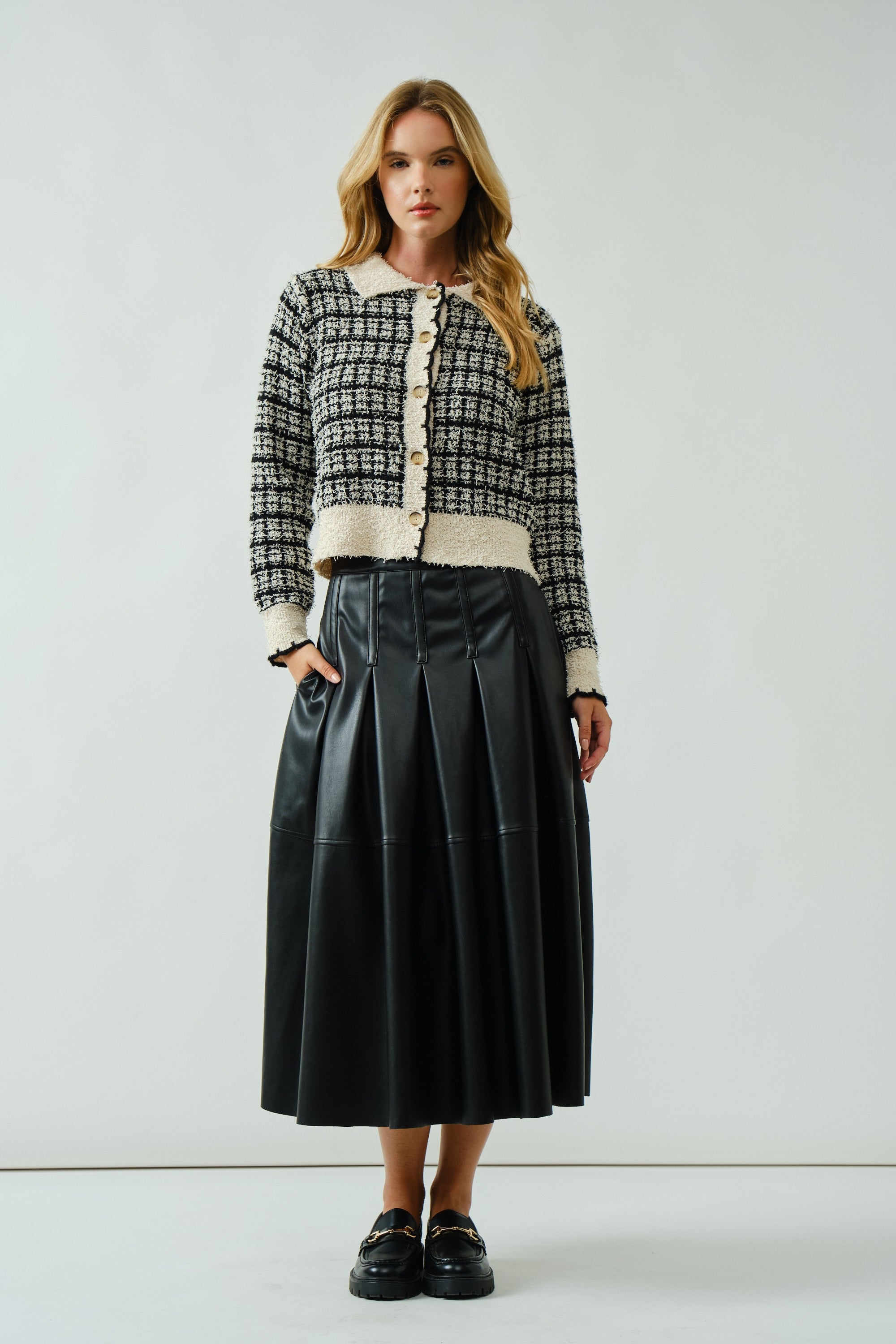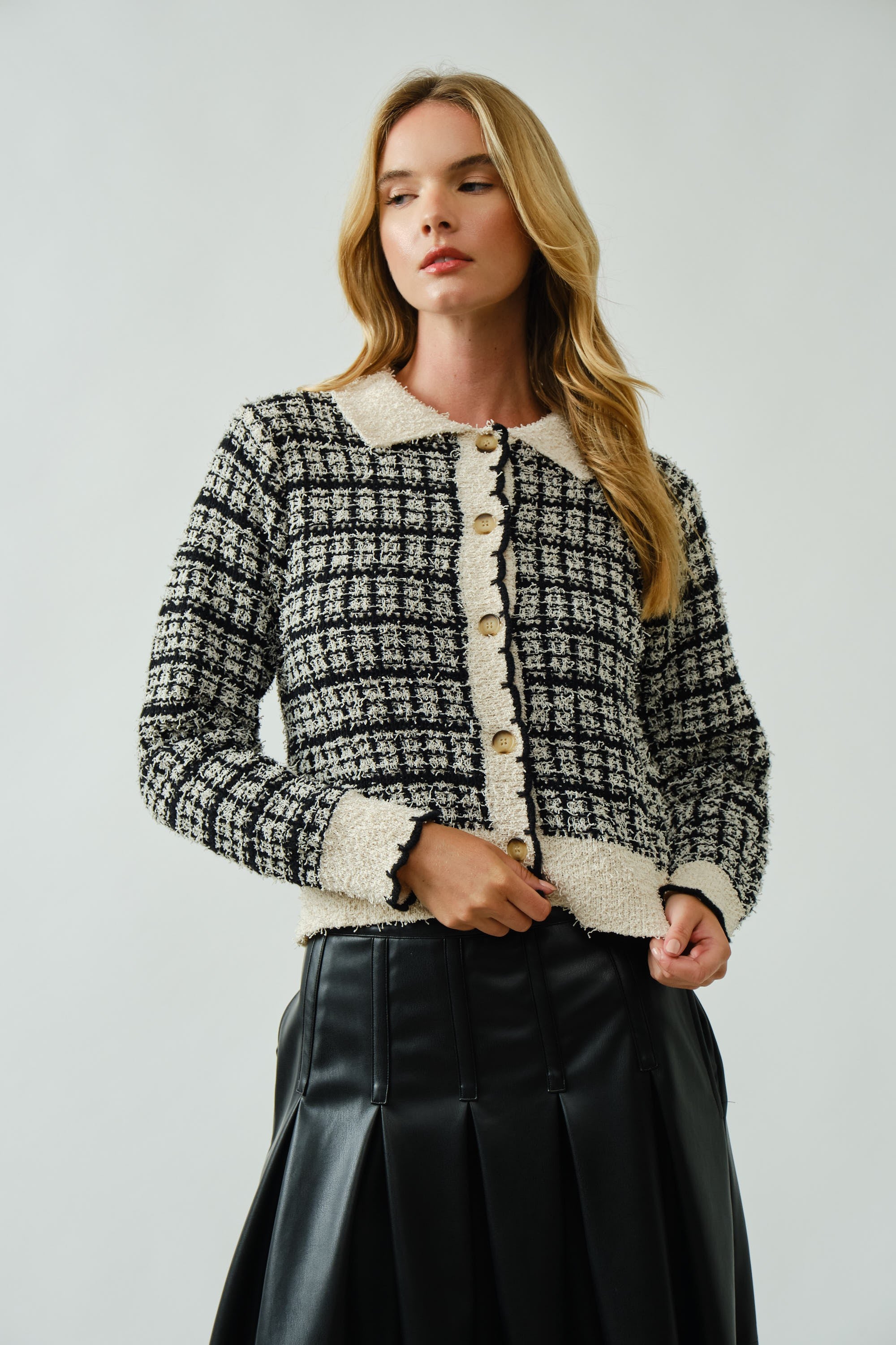 Elevate your collection with this timeless tweed cardigan. Crafted in a classic button-down silhouette, it features delicate scallop detailing along the edges, adding a subtle feminine touch.