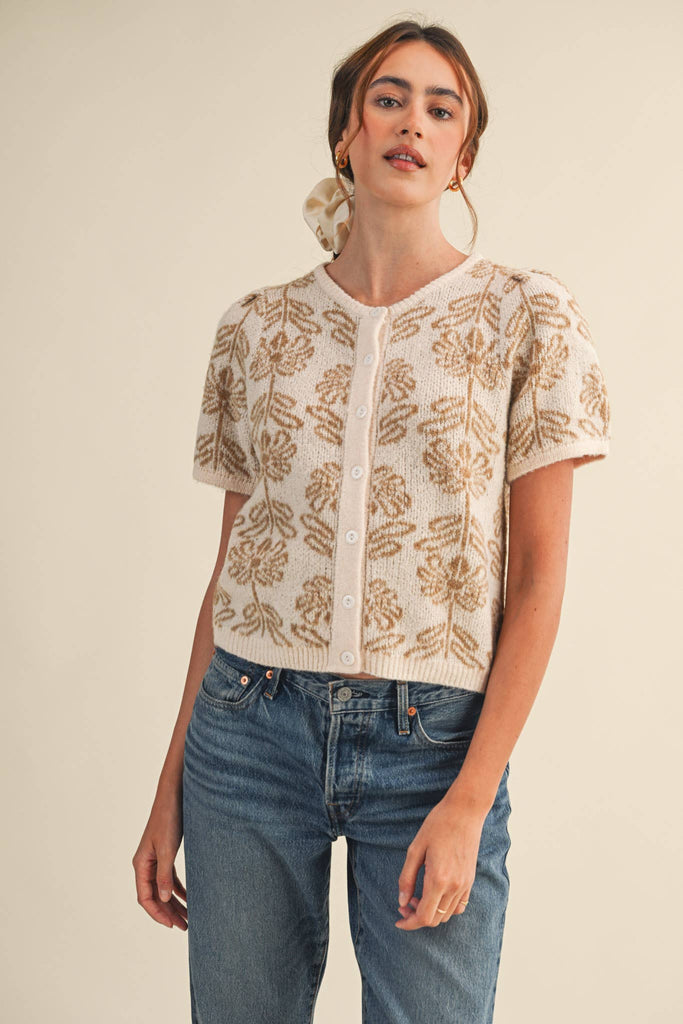 Kersey Floral Pleated Short Sleeve Sweater Top