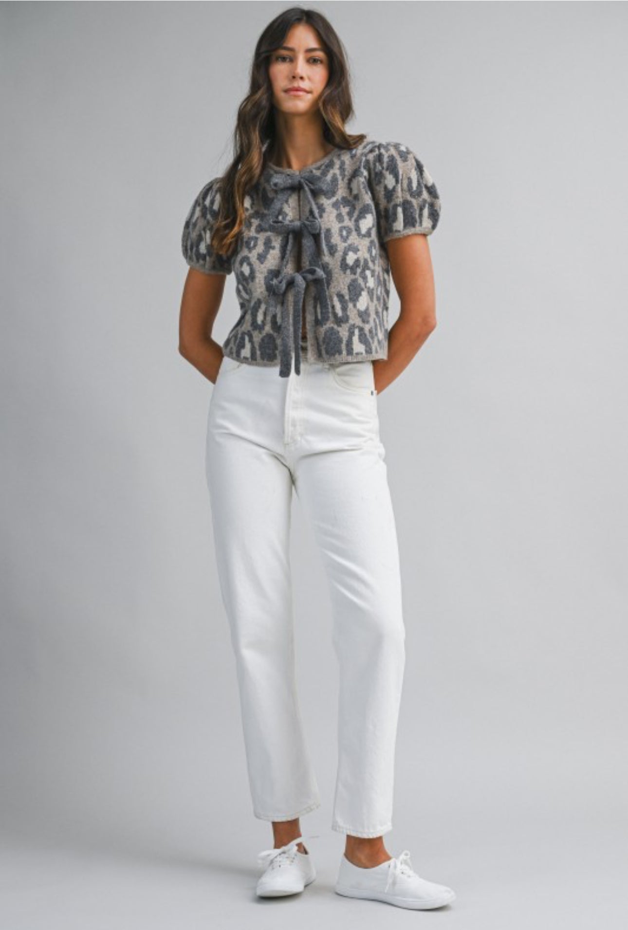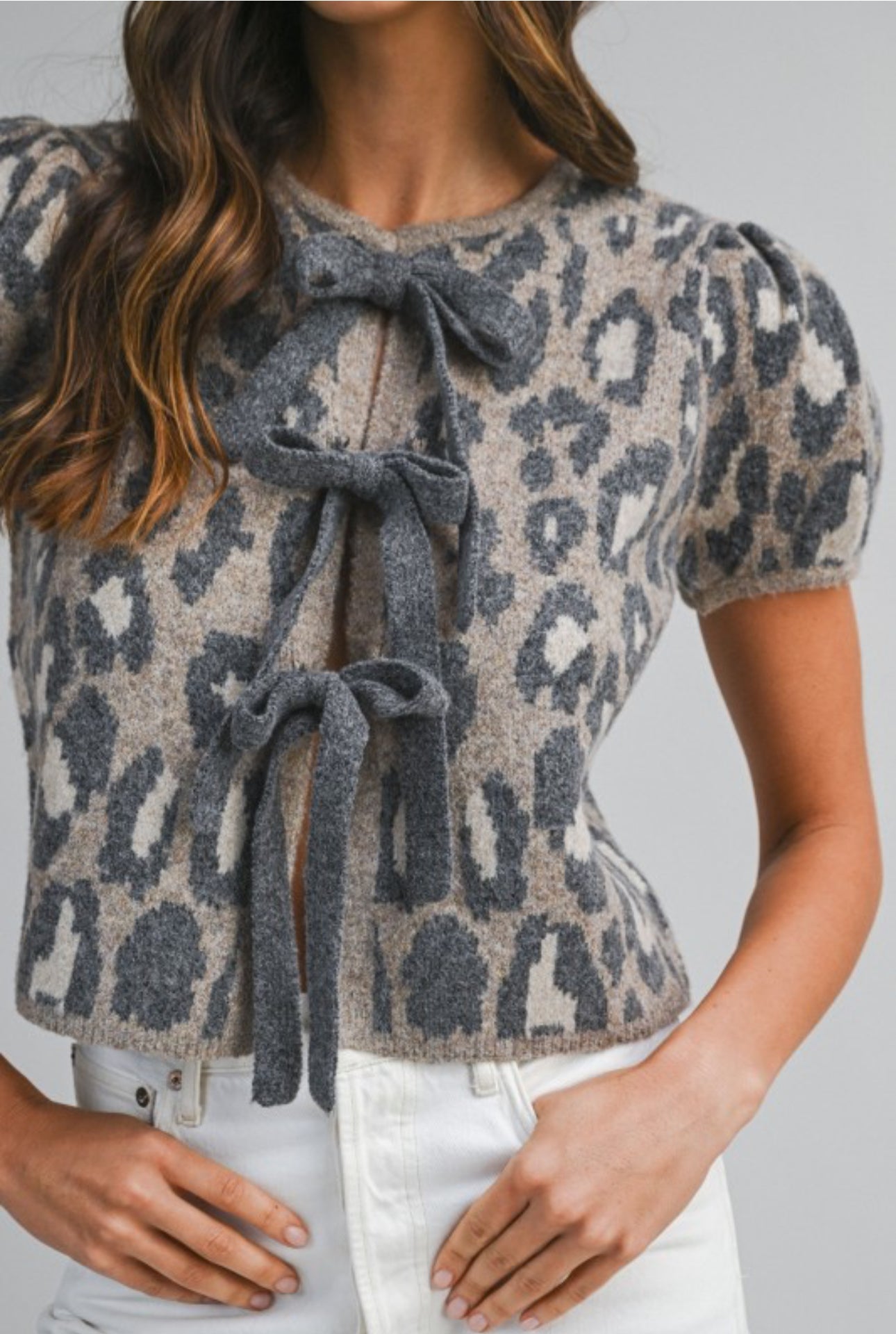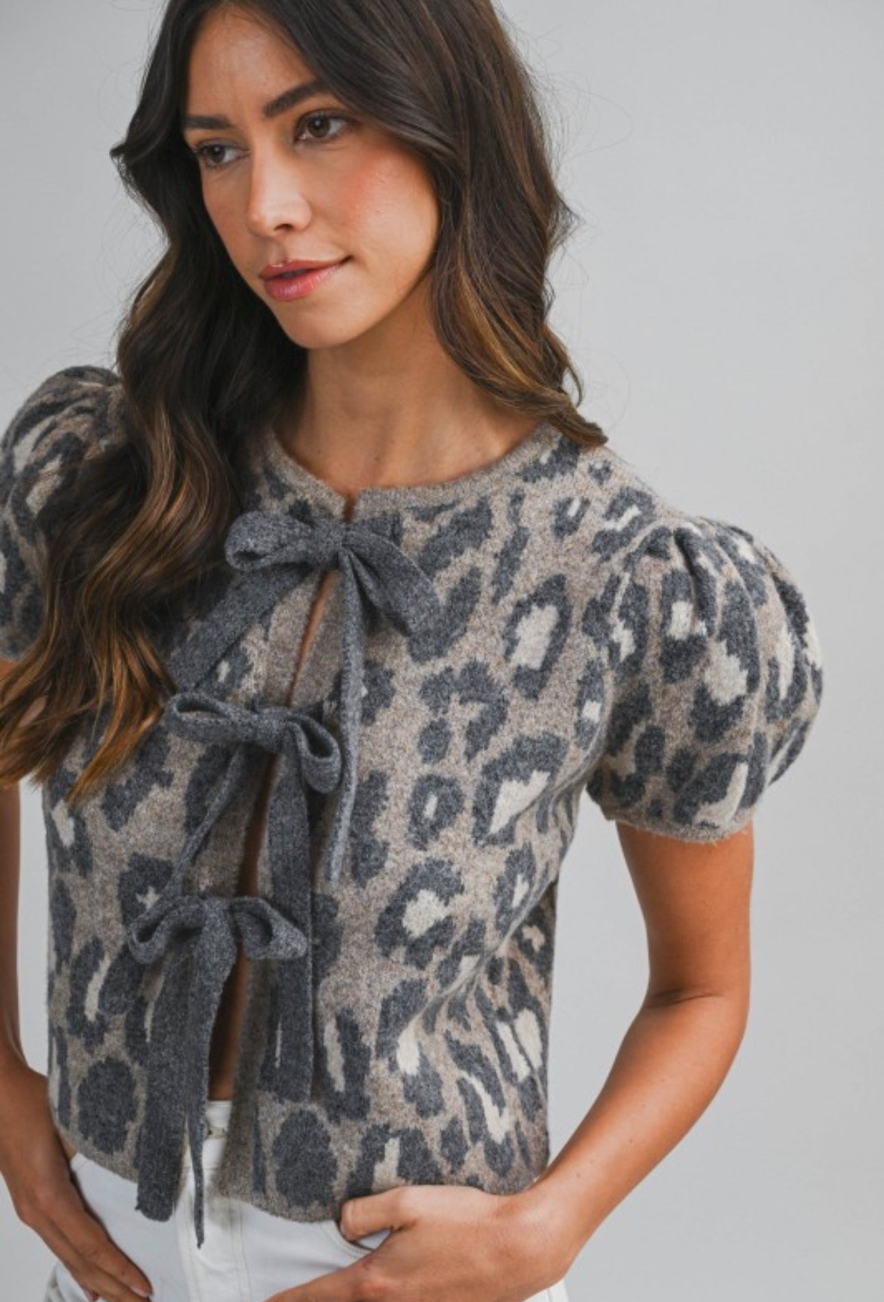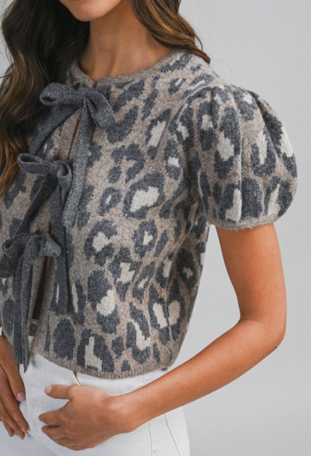 Leopard Puff Sleeve Knit Top *PRE ORDER*