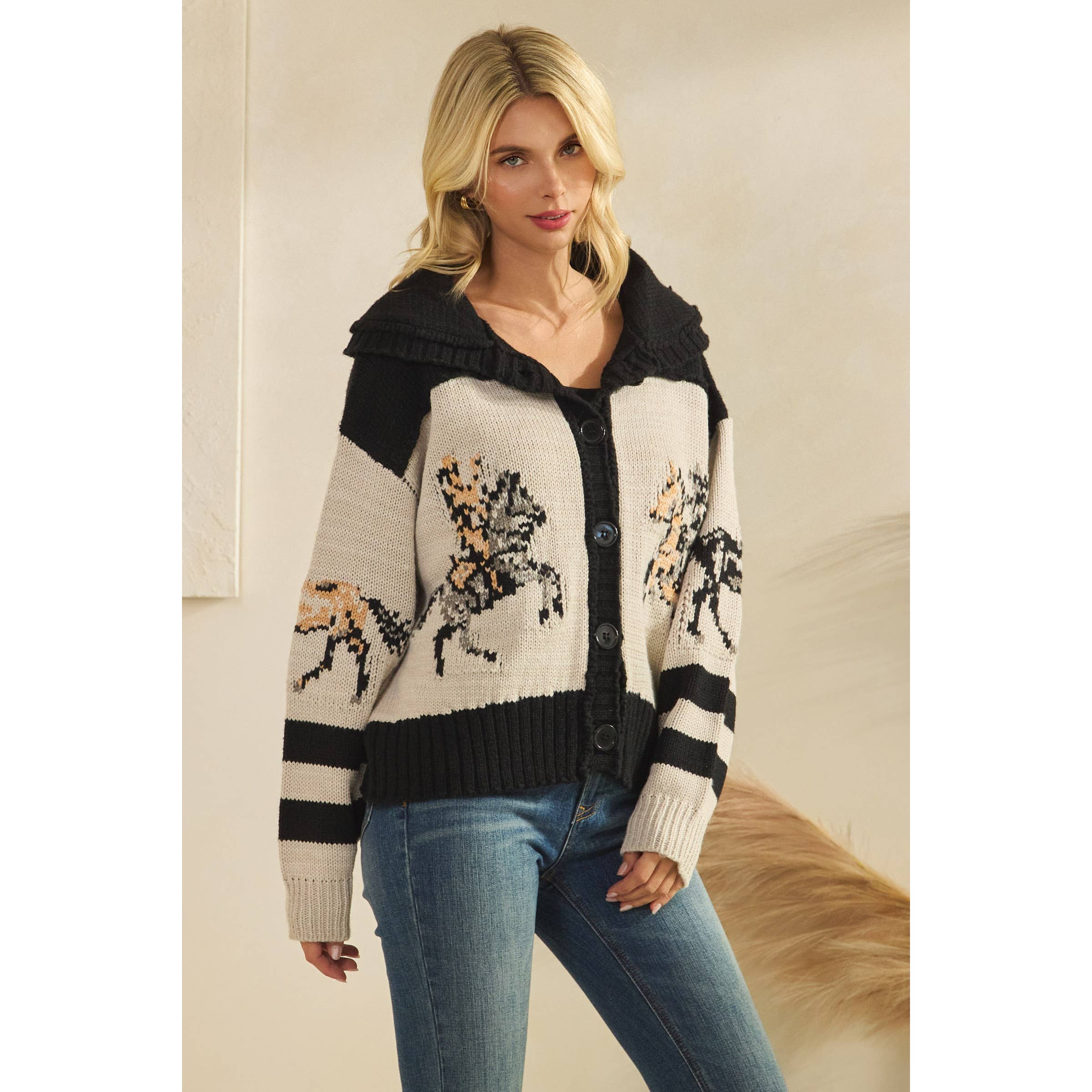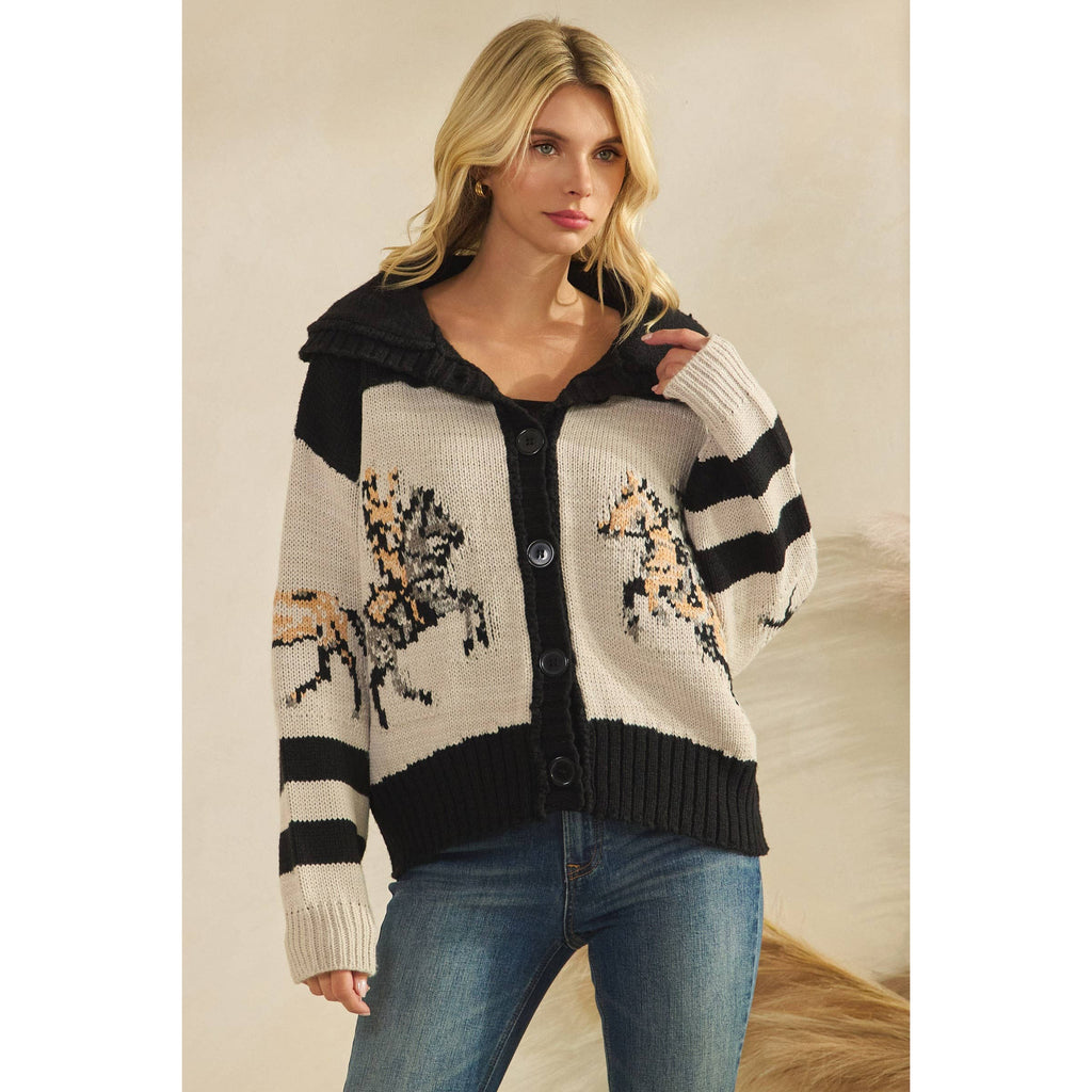 Sweater with Horse Print Hand wash only Model is 5'9 wearing a size small