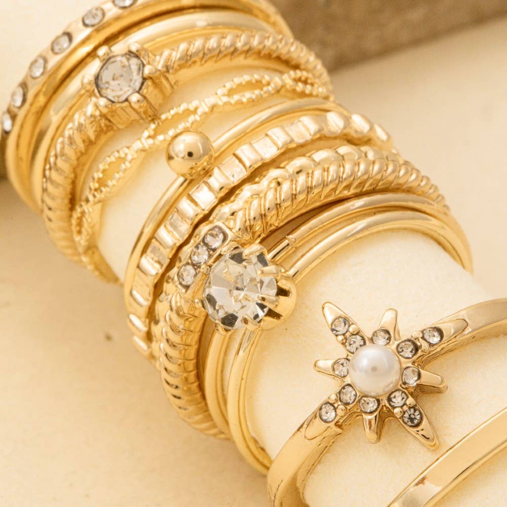Twelve Piece Assorted Rhinestone Star Ring Set